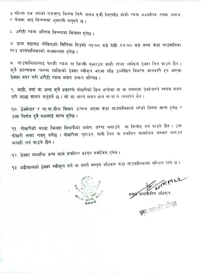 माछा पोखरीको ठेक्का सम्बन्धि सूचना।